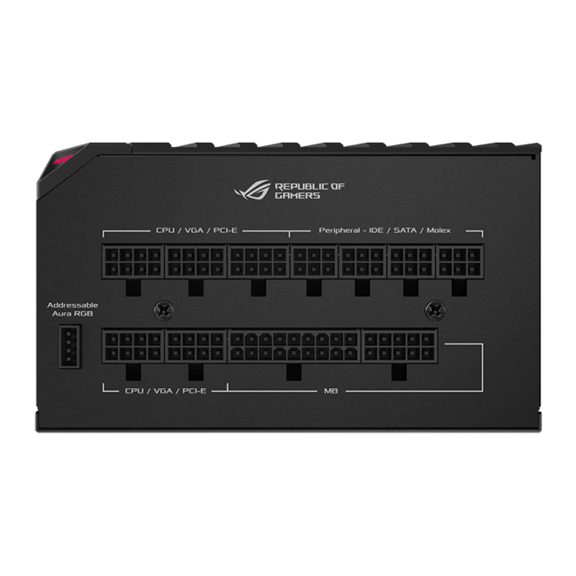ROG Thor 850W Platinum – это блок питания для энтузиастов, которые требуют от своего оборудования не только идеальной работы, но и великолепного внешнего вида. Он воплощает в себе множество инновационных идей: полноцветная подсветка Aura с технологией синхронизации Aura Sync, встроенный OLED-дисплей, пыленепроницаемый вентилятор Wing-blade и большой радиатор, обеспечивающий бесшумное охлаждение при более высоких нагрузках, чем с обычными блоками питания. Благодаря высококачественным и долговечным компонентам, включая конденсаторы японского производства, устройство обладает высокой энергоэффективностью, соответствующей стандарту 80 PLUS Platinum.