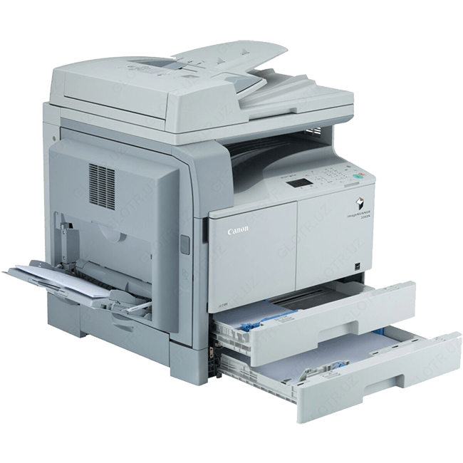 Управление работой в лазерном МФУ Canon IR 2520 осуществляется с помощью удобной сенсорной панели диагональю 5,7 дюймов. При работе он потребляет не более 1542 Вт электроэнергии. Подключение к компьютеру или ноутбуку осуществляется двумя способами – через порт USB 2.0 и по сети Интернет. Благодаря пониженному уровню шума он не издает громких звуков и не мешает работать окружающим. Эта модель отлично подойдет для использования в средних и больших офисах. Она сочетает функции принтера, сканера и копировальной машины. Скорость печати и копирования в минуту составляет до 20 страниц формата A4 и 15 страниц формата A3. При необходимости вы сможете воспользоваться функцией автоматической двухсторонней печати. Максимальное число копий, которое МФУ может выдавать за один цикл, не превышает 999. Для печати в нем используется картридж C-EXV33 с черным тонером 2785B002.