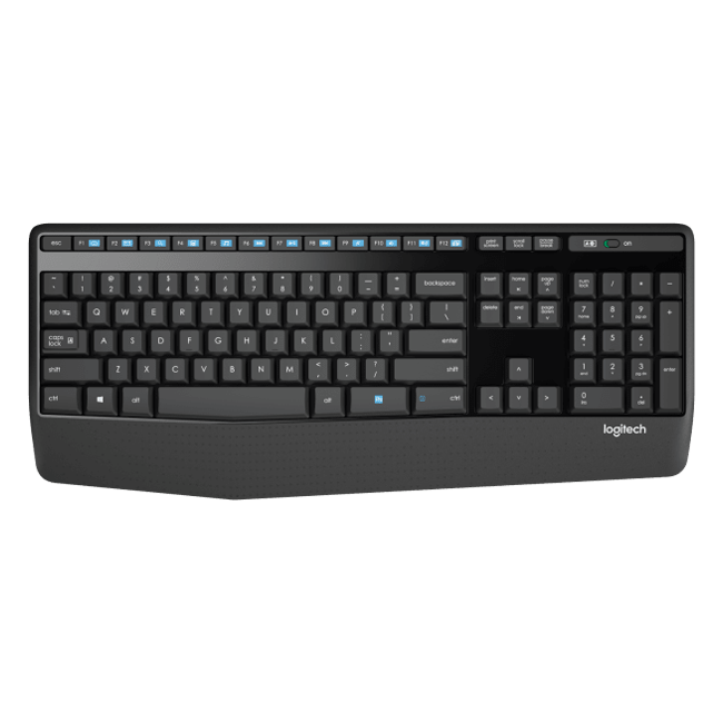 Полноразмерная клавиатура мембранного типа состоит из 104 кнопок. Модель обладает влагозащищенной конструкцией и удобной подставкой для рук. Оптическая лазерная мышь имеет разрешение 1000 dpi и состоит из 3 клавиш. Ее удобное матовое покрытие препятствует скольжению устройства в ладони. Питание и клавиатура, и мышь Logitech Wireless Desktop MK345 получают от батареек типа AA.
