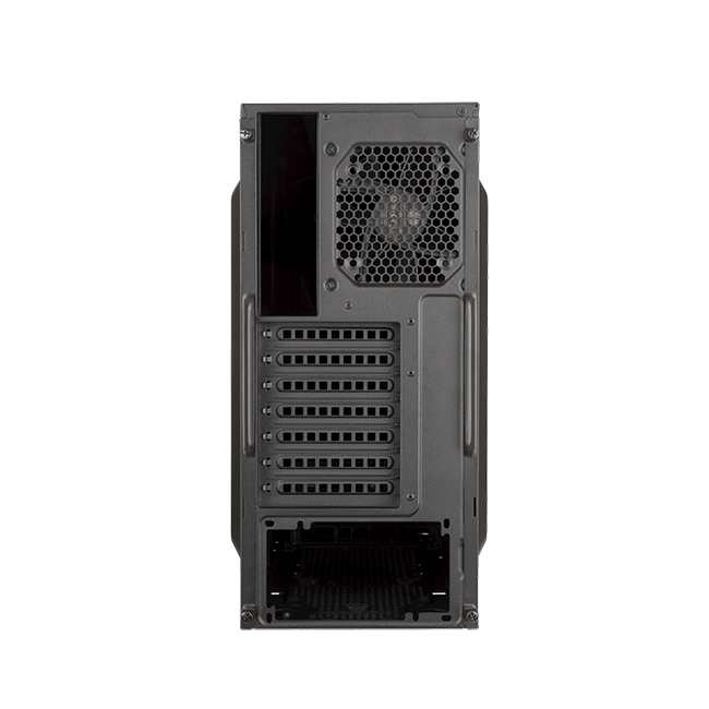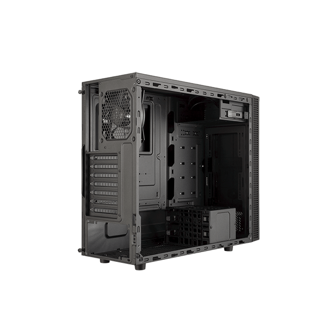 Фронт поддерживает до двух 120 мм / 140 мм вентиляторов и до 280 мм радиатора. Задняя часть поддерживает 120-мм вентилятор или радиатор. Он поставляется с одним предварительно установленным 120-мм вентилятором сзади.
