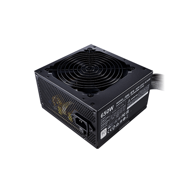 Блок питания CoolerMaster MWE 650 WHITE — V2 [MPE-6501-ACABW-EU], номинальная выходная мощность которого равна 650 Вт, способен обеспечить электропитание компонентов компьютера высокого класса. Вы сможете использовать мощный процессор, производительный видеоадаптер (или несколько видеоадаптеров), а также значительное количество плат расширения и накопителей. Форм-фактор устройства – ATX. Это значит, что блок питания обладает совместимостью с подавляющим большинством корпусов. Энергоэффективность модели превышает средний уровень: об этом свидетельствует соответствие источника питания сертификату 80 PLUS Standart.