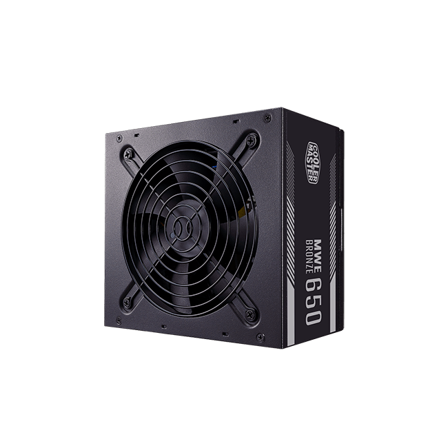 Cooler Master MWE Бронза 650. Общая мощность: 650 Вт, переменное входное напряжение: 100 — 240, входная частота переменного тока: 50 — 60. Диаметр вентилятора: 12 см, Количество вентиляторов: 1 вентилятор(s). Разъем материнской платы: 20 + 4-контактный ATX, длина кабеля питания материнской платы: 61 см, длина кабеля питания SATA: 810 450 570 690 мм. Утилита: ПК, Блок питания (PSU) фактор формы: ATX, среднее время наработки на отказ: 100 000 ч. Цвет продукта: Черный