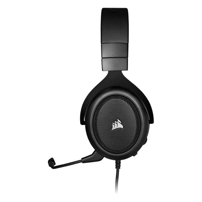 Проводные наушники Corsair HS50PRO имеют микрофон чувствительностью -40 дБ, который расположен на подвижной и съемной ножке. На корпусе расположен регулятор громкости и кнопка активации, что облегчает эксплуатацию. Устройство совместимо с PS и Xbox, поэтому гарнитуру можно использовать во время прохождения уровней в игре.