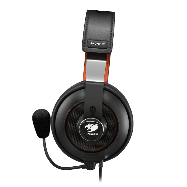 Качественная и сравнительно недорогая накладная игровая гарнитура закрытого типа с проводным подключением и комплектом запасных амбушюров. Производителем позиционируются как продукт средней ценовой категории, предназначенный для любителей комфорта и качественного озвучивания игрового окружения. Имеют крепкую и практичную конструкцию. В основе оголовья использован монолитный алюминиевый каркас, на концах которого крепятся крупные пластиковые чаши с широкими амбушюрами. Важной особенностью последних стал специальный наполнитель — пенополимер с памятью, который равномерно распределяет усилие прижатия, не вызывая преждевременной усталости ушей. Наушники Cougar Phontum оснащаются улучшенными 53-мм динамическими излучателями с графеновыми диффузорами. Такие динамики обеспечивают полноценное воспроизведение частотного диапазона от 20 до 20000 Гц и приличную детализацию звука с акцентом на низких частотах. Всенаправленный микрофон со встроенной системой шумоподавления размещается на съемной гибкой штанге длиной 14 см, которая крепится на корпусе левой чашки. Для подключения к смартфону или планшету предусмотрен односторонний круглый кабель (120 см) с прямым штекером и разъемом 4-pin mini-Jack 3.5 мм. Подключение к стационарному ПК выполняется с использованием комплектного удлинителя-переходника (180 см) с пультом для регулирования громкости/отключения микрофона и 2-мя разъемами 3-pin mini-Jack 3.5 мм.