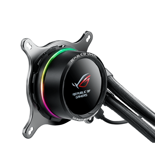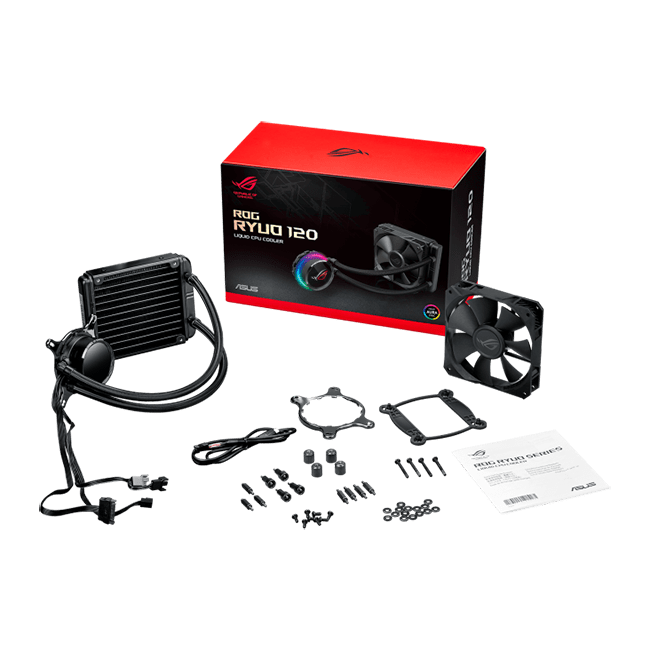 Система охлаждения ASUS ROG RYUO 120 – продукция всемирно известного производителя компьютерного оборудования. Модель выпускается в рамках легендарной производственной серии Republic of Gamers. Система охлаждения сочетает в себе компактность и очень высокую эффективность. Устройство, применяемое для «обслуживания» процессоров, характеризуется показателем максимальной рассеиваемой мощности, составляющим 200 Вт. Система охлаждения совместима с процессорами тотального большинства распространенных в настоящее время сокетов.