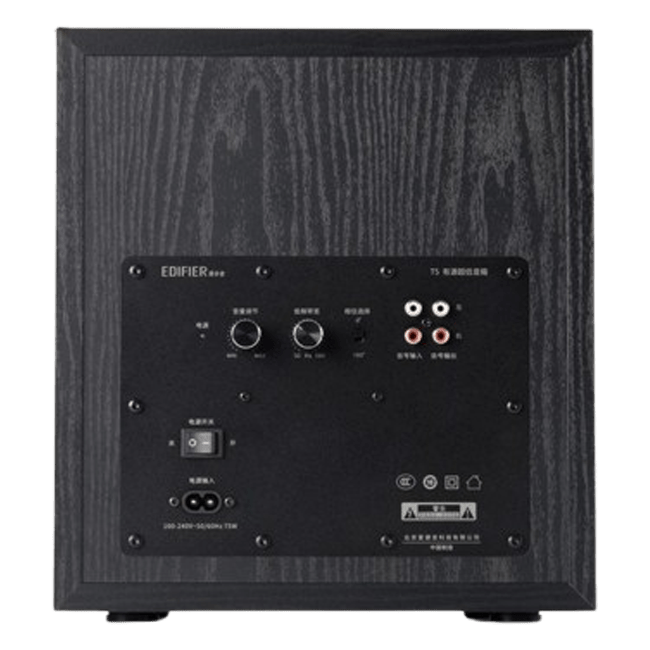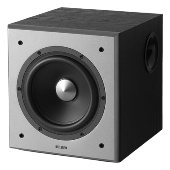 Активный сабвуфер Edifier T5 содержит в своей основе профессиональный динамик диаметром 8 дюймов (203 мм), установленный на передней стенке. Данный сабвуфер характеризуется мощностью 70 Вт. На правой стороне расположен выход порта фазоинвертора, который отвечает за формирование реалистичного и насыщенного баса без искажений звука. С помощью независимой регулировки громкости и частоты среза можно настраивать параметры звучания в зависимости от предпочтений. Корпус Edifier T5 выполнен из MDF и выделяется съемной решеткой на передней стороне.