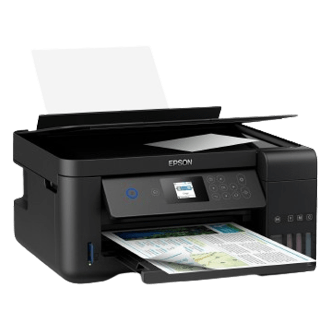 МФУ струйное Epson L4160 объединяет в себе функционал сразу трех представителей офисной техники: копировального аппарата, планшетного сканера и принтера. Модель готова порадовать своего обладателя высокой производительностью, благодаря которой обеспечивается быстрая и качественная печать документов в черно-белом формате со скоростью до 33 стр/мин (A4) и максимальным разрешением 5760×1440 dpi. Такое же разрешение поддерживается и при цветной печати, благодаря чему данное устройство идеально подходит для распечатки фотографий.
