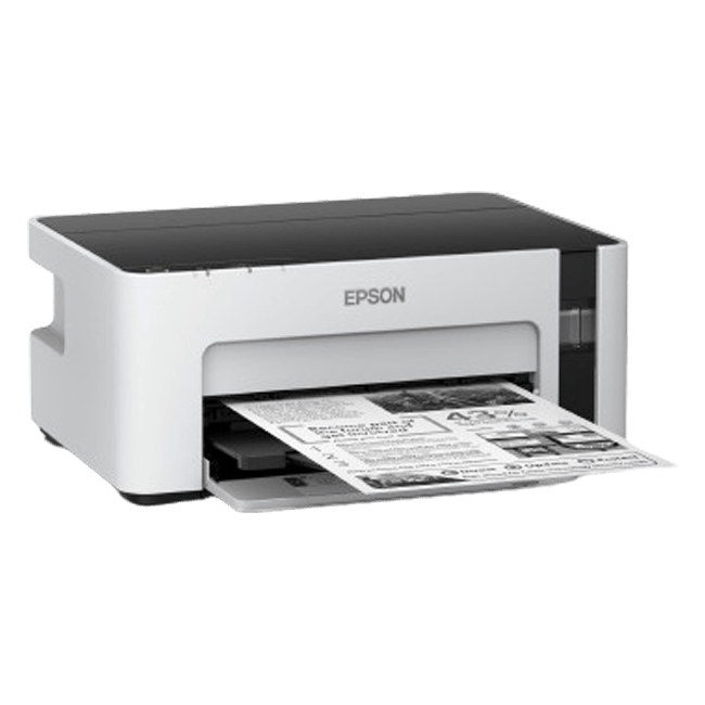 Принтер струйный Epson M1100 – элегантная модель, подходящая для небольшого офиса. В ней используется технология пьезоэлектрической печати Epson Micro Piezo и печатающий механизм, к которому подсоединяется емкость с чернилами, а не картридж. Они обеспечивают высокое качество документов и скорость при низком энергопотреблении.