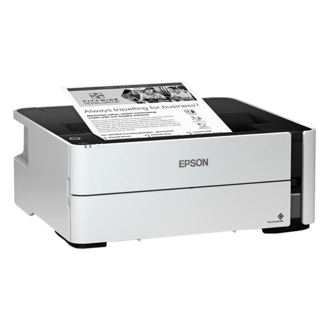 Принтер струйный Epson M1140 порадует невероятно высоким качеством отпечатков, лишенных малейших искажений или нечетких символов, ведь его разрешение возросло до 1200х2400 dpi. Благодаря значительно увеличенной скорости за 1 минуту это устройство способно напечатать до 20 страниц формата А4.