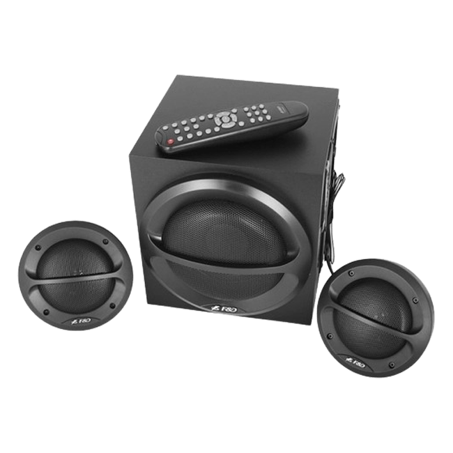 Колонки 2.1 F&D A111X характеризуются значительной мощностью: величина этого показателя равна 35 Вт. Акустика воспроизводит звук в диапазоне от 45 до 20000 Гц (в том числе сабвуфер – от 45 до 135 Гц). Есть возможность регулировки низких частот. В комплектацию модели входит многофункциональный пульт дистанционного управления, спектр возможностей которого сопоставим с возможностями телевизионных пультов ДУ.