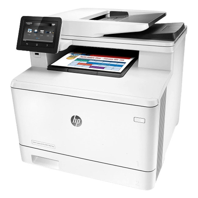 HP Color LaserJet Pro M479dw работает с матовой, ламинированной и глянцевой бумагой, а также конвертами, карточками и этикетками. Скорость при печати черными и цветными чернилами составляет 27 стр/мин, при этом первый лист выходит уже через 9.7 сек. в черно-белом, через 11.3 сек. в цветном варианте.