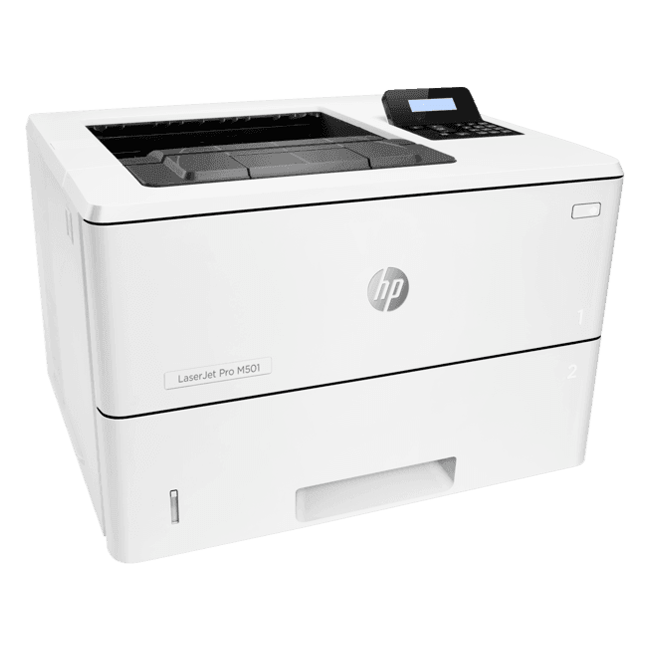 Быстрота печати, высокая производительность и экономичность – вот, что вы получаете, используя принтер лазерный HP LaserJet Pro M501dn. Это устройство для черно-белой печати, способное выдать за минуту до 45 страниц с разрешением печати в 600×600 dpi. А количество напечатанных на принтере страниц в месяц может достигать 100000, ресурс черного картриджа составляет порядка 9000 страниц. Прямая печать позволит распечатывать фото сразу с камеры или с флеш-накопителя, что значительно экономит время и силы. HP LaserJet Pro M501dn допускает возможность использования таких носителей как этикетки, пленки, конверты, главное, чтобы плотность их варьировалась в диапазоне 60 — 220 г/м2. Аппарат поддерживает мобильную технологию печати Apple AirPrint (iOS).