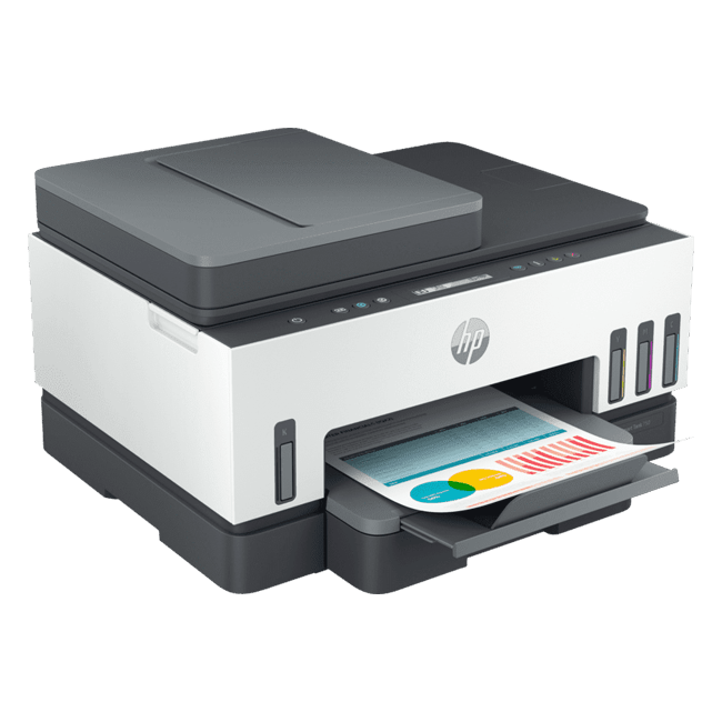 МФУ струйное HP Smart Tank 750 является компактной настольной моделью, которая легко заменит собой сразу трех представителей офисной техники: принтер, сканер и копировальный аппарат. Устройство с системой непрерывной подачи чернил и поддержкой сменных печатных головок использует термоструйную технологию печати, позволяющую добиться невероятно высокого разрешения цветной печати — 4800×1200 dpi.