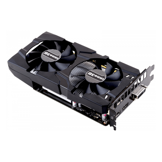Для вывода картинки в разрешении 7680×4320 Inno3D GeForce GTX 1050 Ti Twin X2 предусматривает несколько разъемов, среди которых HDMI, DisplayPort, DVI-D. Два осевых вентилятора участвуют в активном воздушном охлаждении системы, что позволяет увеличить время игровых сессий.