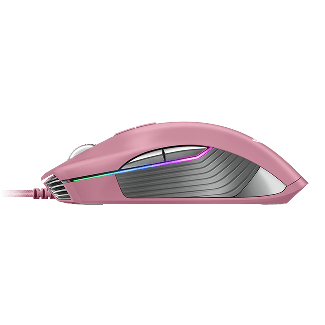 Мышка игрового класса, одним из главных достоинств которой является высокоточный сенсор, реализованный оптикой Pixart PMW 3389DM-T3QU. Сенсор может похвастаться нескромно широким диапазоном разрешающей способности в пределах от 100 до 16 000 dpi. Максимальное ускорение находится на уровне 50G, а предельная скорость составляет 11,43 м/с. Потенциала мышки хватит на самые скоростные баталии, в которых упор делается на стабильность и надежность работы игровых девайсов. Корпус манипулятора получил полностью симметричный дизайн, что делает мышку удобной и для правши, и для левши. Манипулятор располагает набором из 10 кнопок и колесом прокрутки. Все кнопки оснащены полноценными механическими переключателями, а главные кнопки укомплектованы высоконадежной механикой Omron, с наработкой на отказ в 50 млн нажатий для каждого переключателя. Мышку можно подвергать тонкой настройке, благодаря специализированному ПО. Предусмотрена возможность настройки высоты отрыва от поверхности (LOD). При этом рабочий диапазон значений LOD находится в пределах 1-3 мм. Этого хватит, чтобы настроить сенсор мышки под любой коврик. Настройке можно подвергать значение DPI и частоты опроса USB.