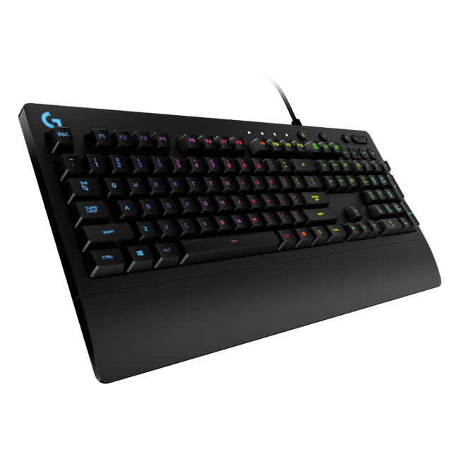 Клавиатура проводная Logitech G213 Prodigy – полноразмерная игровая модель с тонким корпусом, защитой от пыли и брызг, удобными ножками и подставкой под запястье. Цветная RGB-подсветка с поддержкой более 16.8 млн цветов позволяет настроить 5 зон освещения и синхронизировать работу с устройствами на основе ПО Logitech G HUB. Вы легко подстроите управление под ваш стиль игры, насладитесь точным и сверхскоростным откликом на команды.