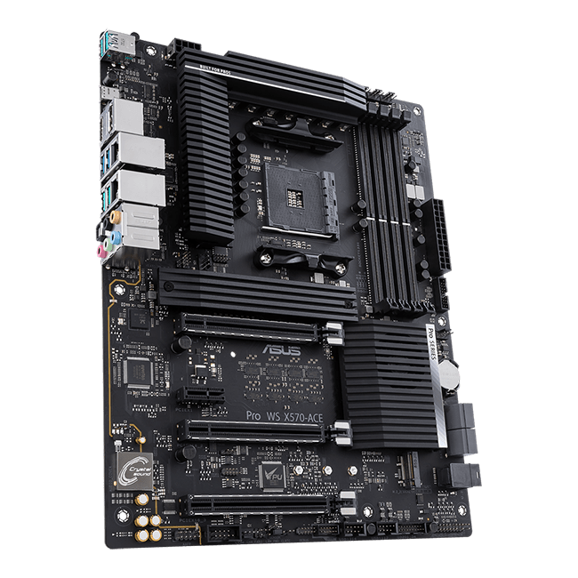 Материнская плата ASUS Pro WS X570-ACE разработана на чипсете AMD X570 с сокетом AM4, что позволяет использовать широкий ряд процессоров. Для установки видеокарт в данной модели предусмотрено 3 интерфейса PCI-E 3.0 x16, благодаря которому вы сможете выбирать мощные ускорители и наслаждаться качественной графикой в играх, а также высокой производительностью в профессиональных редакторах. Также данная платформа поддерживает 128 ГБ временной памяти типа DDR4 с максимальной частотой до 4400 МГц. Для создания файлового хранилища предусмотрено 4 интерфейса SATA III и 2 разъема M.2.