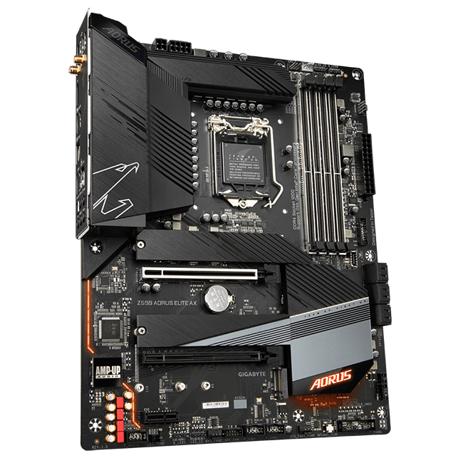 Материнская плата GIGABYTE Z590 AORUS ELITE AX — решение с широкими возможностями, которое позволит создать производительную систему для любых задач. Платформа соответствует формату Standard-ATX, что открывает широкие возможности для конфигурации компьютера. Благодаря первоклассным компонентам модель отличается высокой надежностью, а стильный дизайн корпуса, сочетающий в себе необычные формы и RGB-подсветку, станет отличным визуальным дополнением вашей сборки.