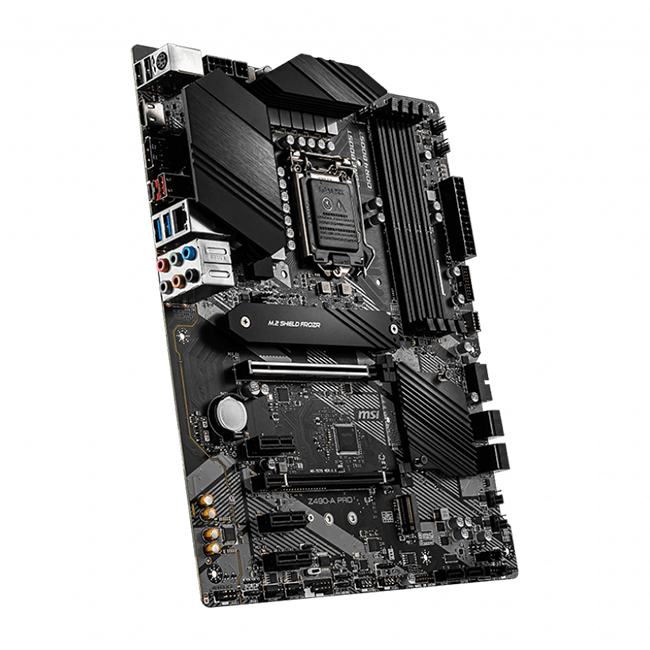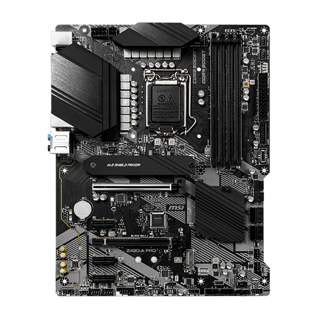 Хорошо оснащенная и высокопроизводительная оверклокерская материнская ATX-плата 2020-го года на основе флагманского набора системной логики Intel Z490. Оборудована процессорным разъемом LGA 1200 и полностью совместима с процессорами Intel Core i9/i7/i5/i3/Pentium/Celeron 10-го поколения с микроархитектурой Comet Lake. Имеет мощную 14-фазную цифровую подсистему питания процессора CPU VRM, силовые элементы которой дополнительно оснащены алюминиевыми радиаторами. Способна длительное время работать в условиях тяжелой многопоточной нагрузки (рендеринг фотореалистичных 3D-изображений, обработка 4K/8K-видео, математические расчетные задачи и моделирование физических процессов). Кроме этого материнская плата MSI Z490-A PRO полноценно поддерживает функции тонкой настройки режима работы системных компонентов и может быть интересна энтузиастам, предпочитающим эксплуатацию ключевых компонентов ПК в режиме существенного разгона. Благодаря разъему PCI-E 16x, усиленному стальной накладкой, подойдет для инсталляции крупногабаритных и массивных топовых видеокарт с многослотовыми системами охлаждения. Поддерживает установку внушительного объема быстродействующей оперативной памяти DDR4 (до 128 Гб) и двух высокоскоростных M.2 SSD накопителей (один с радиатором M.2 Shield FrozR).