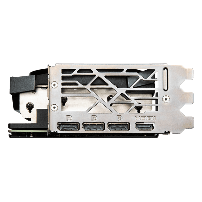 Видеокарта MSI GeForce RTX 4070 Ti GAMING X TRIO сочетает оригинальный дизайн и высокую производительность. Благодаря архитектуре NVIDIA Ada Lovelace и 12 ГБ памяти стандарта GDDR6X достигается стабильная графическая производительность в компьютерных играх. Процессор работает на частоте в пределах значения 2760 МГц. Для вывода изображения на боковой стороне предусмотрены 3 разъема DisplayPort и 1 разъем HDMI.
