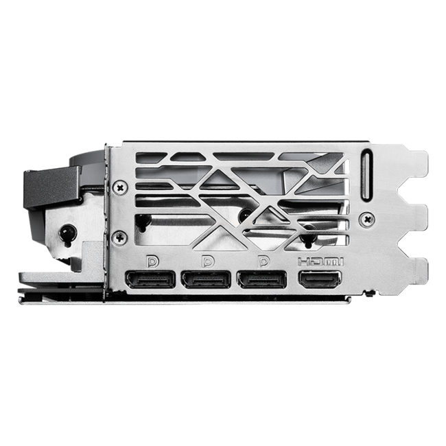Видеокарта MSI GeForce RTX 4070 Ti GAMING X TRIO сочетает оригинальный дизайн и высокую производительность. Благодаря архитектуре NVIDIA Ada Lovelace и 12 ГБ памяти стандарта GDDR6X достигается стабильная графическая производительность в компьютерных играх. Процессор работает на частоте в пределах значения 2760 МГц. Для вывода изображения на боковой стороне предусмотрены 3 разъема DisplayPort и 1 разъем HDMI.