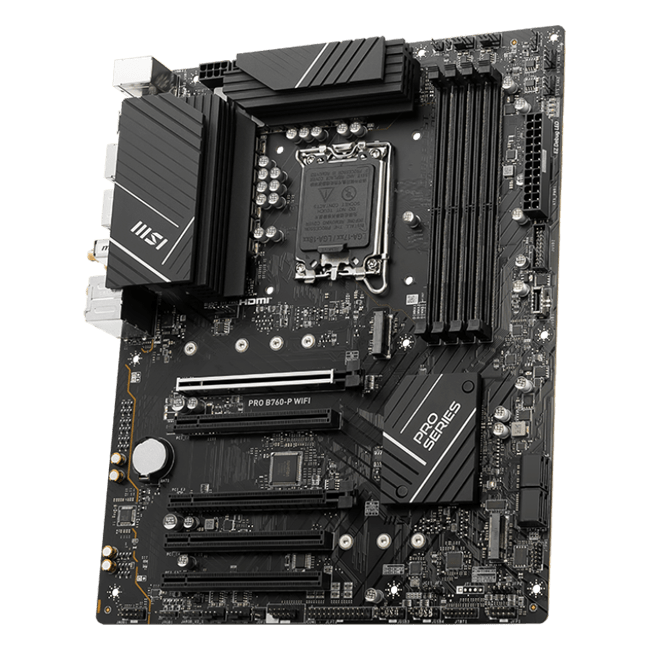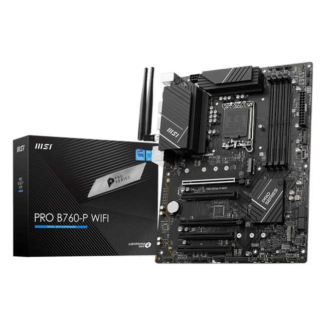 Материнская плата MSI PRO B760-P WIFI DDR4 обладает характеристиками производительной и надежной основы для сборки профессиональной рабочей станции. Она выполнена в полноразмерном форм-факторе и поддерживает работу с процессором Intel Core 13-го поколения. Модель отличается наличием 4 модулей DIMM DDR4, 5 слотами расширения PCI-E x16, 2 разъемами M.2 и 4 слотами SATA. MSI PRO B760-P WIFI оборудована сетевым адаптером со скоростью 2.5 Гбит/с и модулем беспроводной связи по Wi-Fi. Качественная элементная база с протестированными компонентами гарантирует исключительную надежность. С помощью фирменного ПО можно осуществлять мониторинг и управлять параметрами ПК.