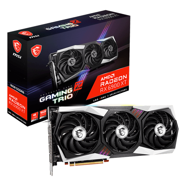 Видеокарта MSI AMD Radeon RX 6900 XT GAMING Z TRIO на базе архитектуры AMD RDNA 2, оснащенная 80 мощными улучшенными вычислительными блоками, кэш-памятью AMD Infinity Cache объемом 128 МБ и выделенной памятью GDDR6 объемом до 16 ГБ, разработана для обеспечения сверхвысокой частоты кадров и игрового процесса с разрешением 4K на серьезном уровне.