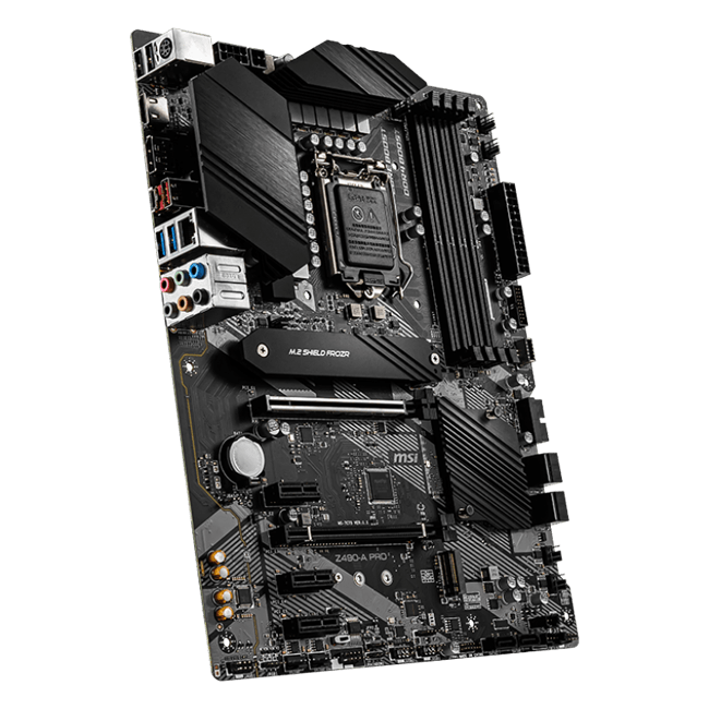 Форм-фактор платы MSI Z490-A PRO – Standard-ATX. Такие платы в подавляющем большинстве случаев обладают необходимым для существенного расширения функциональных возможностей системы количеством слотов расширения. Рассматриваемая модель не является исключением: в вашем распоряжении будут 2 слота PCI-E x16 и 3 слота PCI-E x1. Штатное оснащение платы – звуковой адаптер 7.1 и сетевой адаптер Realtek RTL8125-CG, обеспечивающий скорость 2500 Мбит/с.