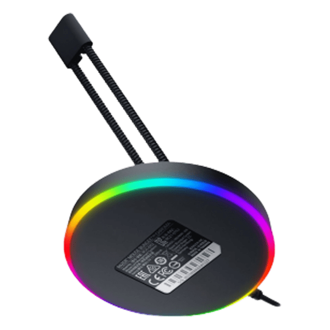 Держатель Razer Mouse Bungee V3 Chroma обладает утяжеленным противоскользящим основанием, гарантирующим неподвижность устройства как в вертикальном положении, так и во время довольно агрессивного игрового процесса. Устройство способно дополнить собой уникальную экосистему компьютерной техники благодаря RGB-подсветке с разнообразными световыми эффектами.