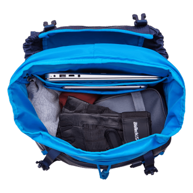 • Просторная секция для перевозки необходимых вещей, документов, спортивной формы затягивается шнуром и дополнительно закрывается на клапан с двумя пряжками.