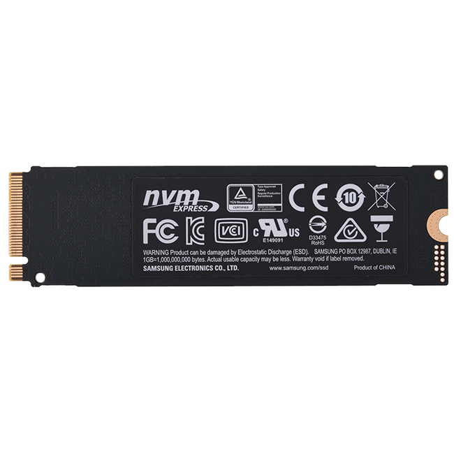 1000-гигабайтный SSD M.2 накопитель Samsung 970 EVO [MZ-V7E1T0BW] – твердотельный накопитель экстра-класса. Уровень производительности устройства настолько высок, что для большинства пользователей он будет даже избыточным. Накопитель, обмен данными с которым осуществляется с использованием интерфейса PCI-E 3.0 x4, обладает совместимостью с мобильными и стационарными компьютерами, в которых реализована поддержка технологии NVMe. Используемый для установки ключ – M. Форм-фактор устройства – 2280. Толщина накопителя равна лишь 2.38 мм. Этот показатель достигнут за счет использования односторонней компоновки чипов памяти.